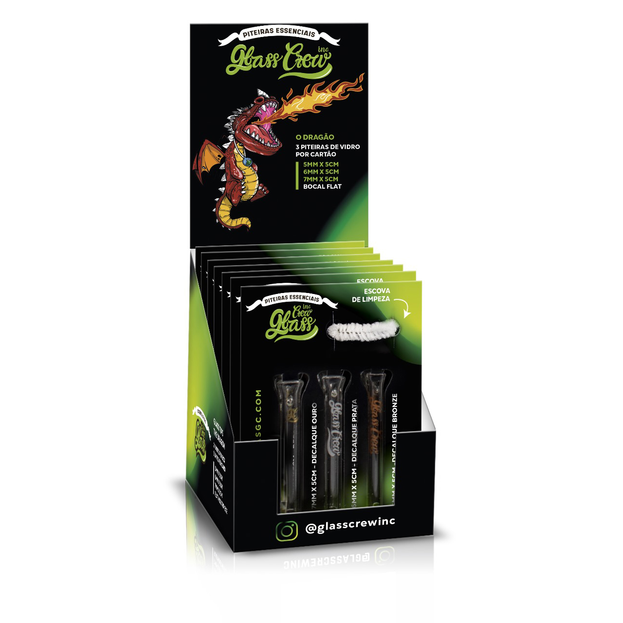 Liberta o fogo da tua sessão com o pack O Dragão, uma edição essencial da Glass Crew Inc. que junta potência visual com funcionalidade. São 3 piteiras de vidro com decalques exclusivos (ouro, prata e bronze), todas com bocal flat, ideais para quem valoriza estilo, qualidade e desempenho.